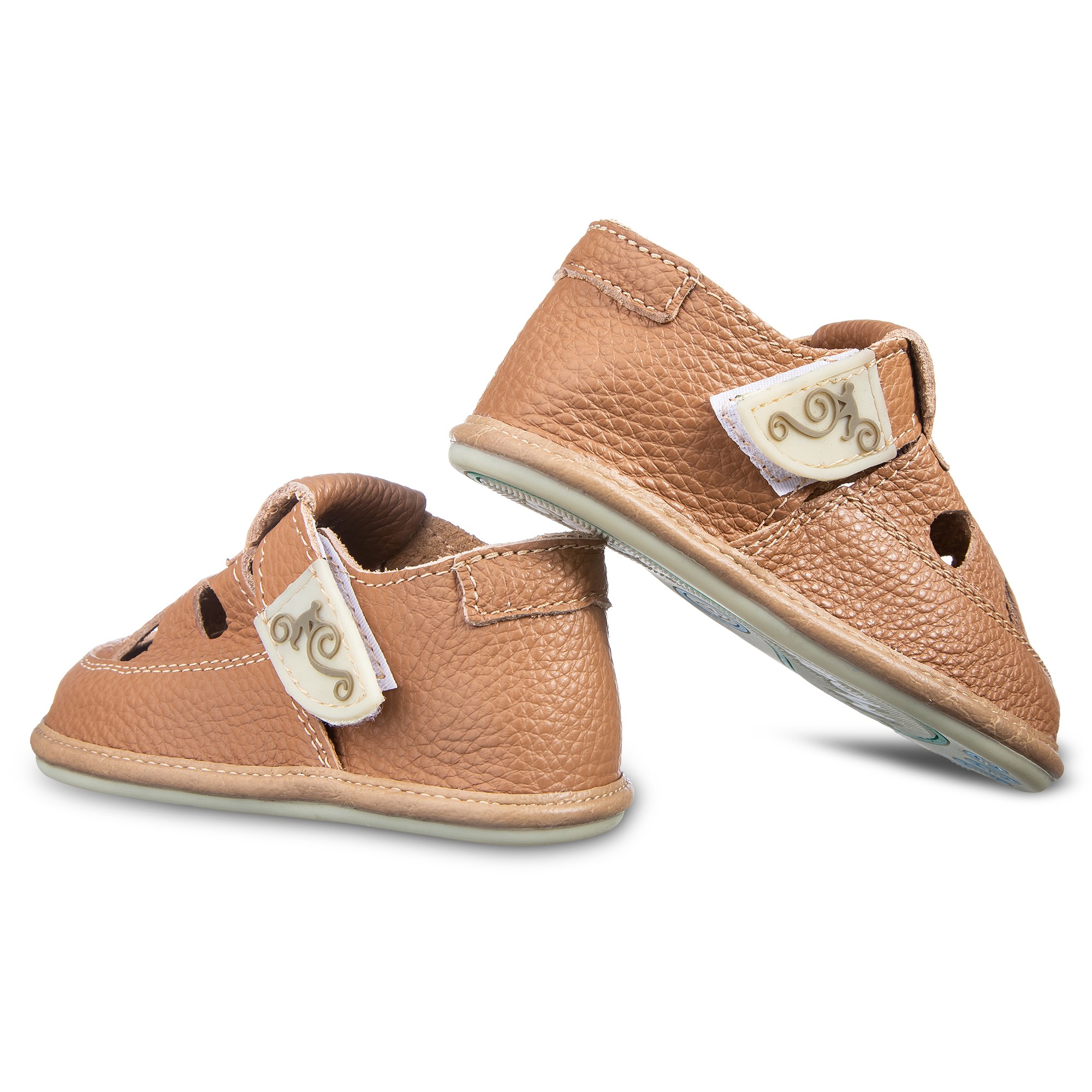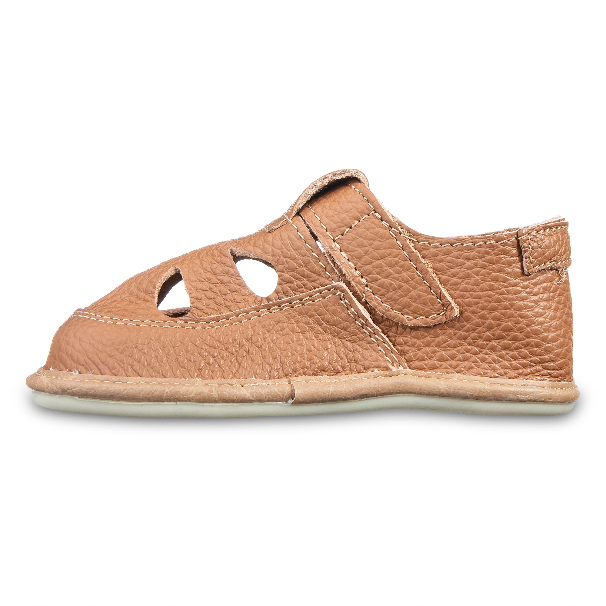 Cholewka wykonana jest z wysokiej jakości naturalnej skóry, która jest miękka i przyjazna dla delikatnej skóry dziecka. Wnętrze zaprojektowano tak, aby minimalizować ryzyko otarć i zapewnić komfort nawet podczas intensywnej zabawy. Szeroki, anatomiczny nosek daje palcom przestrzeń do swobodnego ułożenia i ruchu. Elastyczna, cienka i płaska podeszwa z trwałej gumy pozwala dziecku czuć podłoże, wspiera naturalną postawę i prawidłowy rozwój motoryczny.